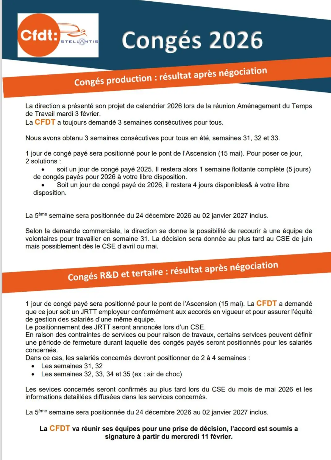 Tract congés 2026