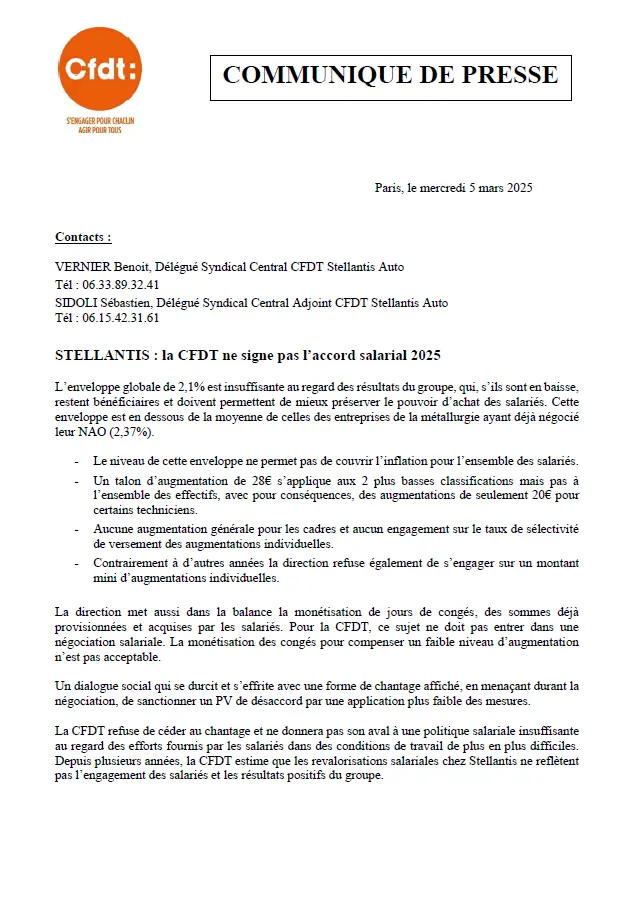 CP CFDT Stellantis la CFDT ne signe pas l'accord salarial